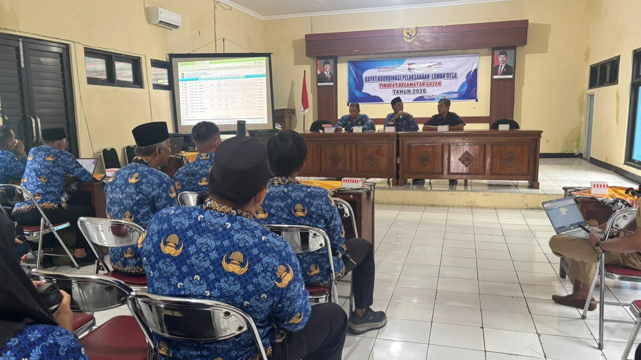 Rapat ini juga membahas teknis pelaksanaan lomba, jadwal penilaian, serta pembagian peran antara pihak kecamatan, pendamping desa, dan pemerintah desa. Suasana rapat berlangsung aktif dan komunikatif, di mana para peserta menyampaikan berbagai usulan dan komitmen bersama untuk menyukseskan kegiatan tersebut. Melalui rapat koordinasi ini, diharapkan pelaksanaan Lomba Desa Tahun 2026 di Kecamatan Gajah dapat berjalan dengan lancar, transparan, dan mampu menjadi sarana evaluasi serta motivasi bagi desa-desa dalam meningkatkan kualitas tata kelola pemerintahan dan pelayanan kepada masyarakat.